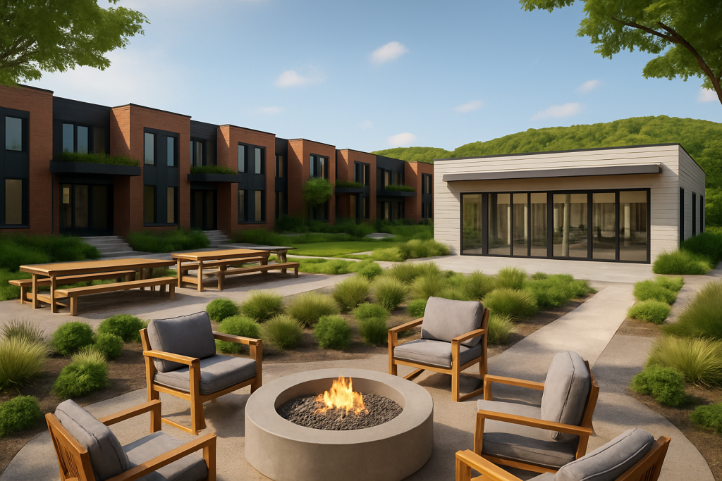 Park space, Fire pits and grilling areas, Residential and commercial spaces -